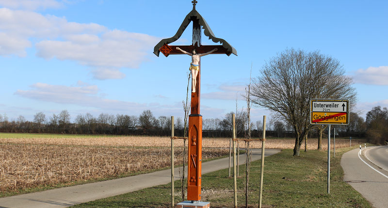 Das „Neu“ restaurierte Feldkreuz der Fam. Buchenscheit, das man passiert wenn man am Ortsausgang Gögglingen in Richtung Unterweiler unterwegs ist, erstrahlt in neuem Glanz.