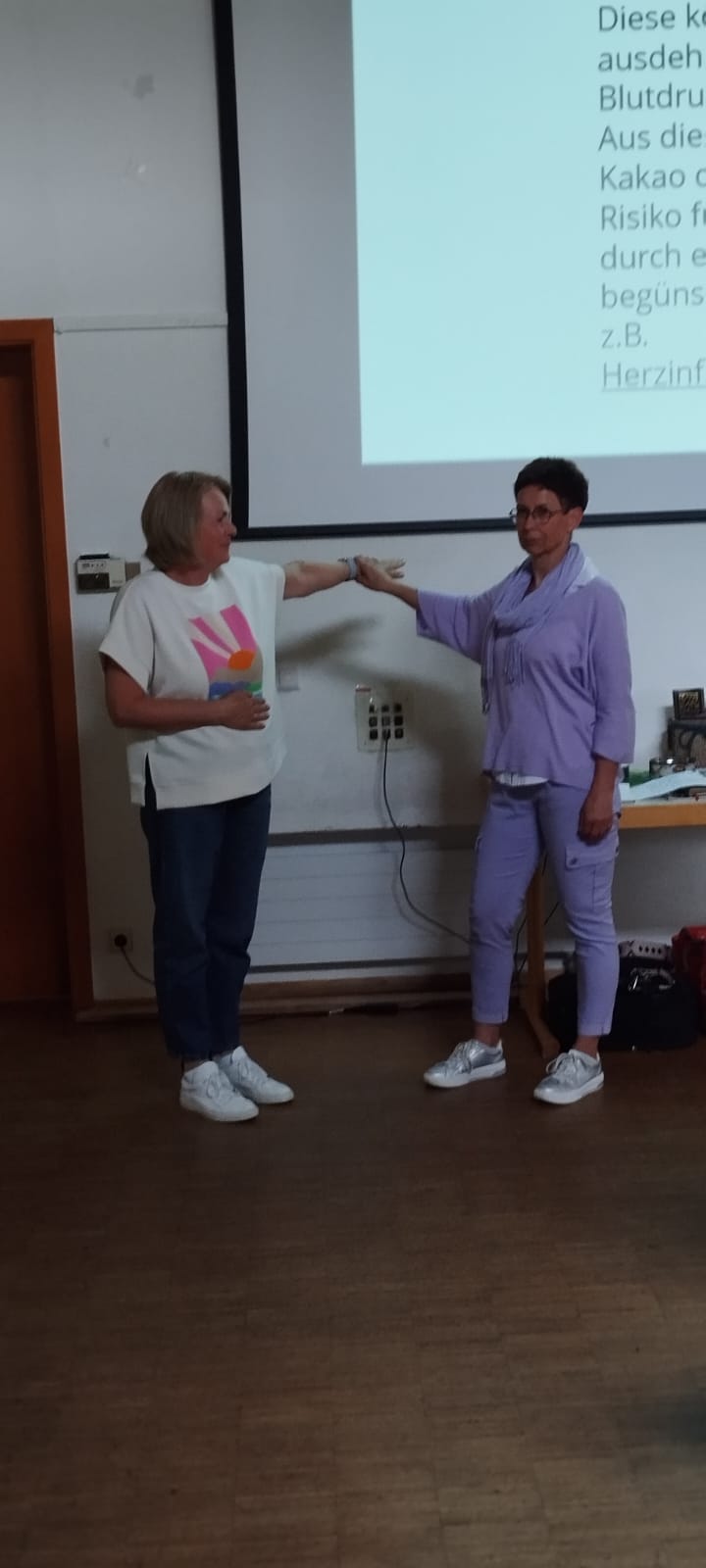 Im Mittelpunkt stand ein Vortrag von Frau Monika Speidel zum Thema „Schokolade – wie Nahrungsmittel unser Wohlbefinden beeinflussen“. Thematisiert wurde die Geschichte der Schokolade, der Prozess der Verarbeitung von der Kakaofrucht bis zur Schokolade, die positive Wirkung auf Psyche und Gesundheit. Frau Speidel betonte: „Gesund ist, was uns Freude macht. Genießen in Maßen erzeugt Wohlbefinden, erzeugt Gesundheit“. Ihr Motto lautet „Wer nicht genießt, wird mit der Zeit ungenießbar.“ Zum Schluss gab sie noch viele Tipps, wie Schokolade in Kuchen und Torten verarbeitet werden kann.