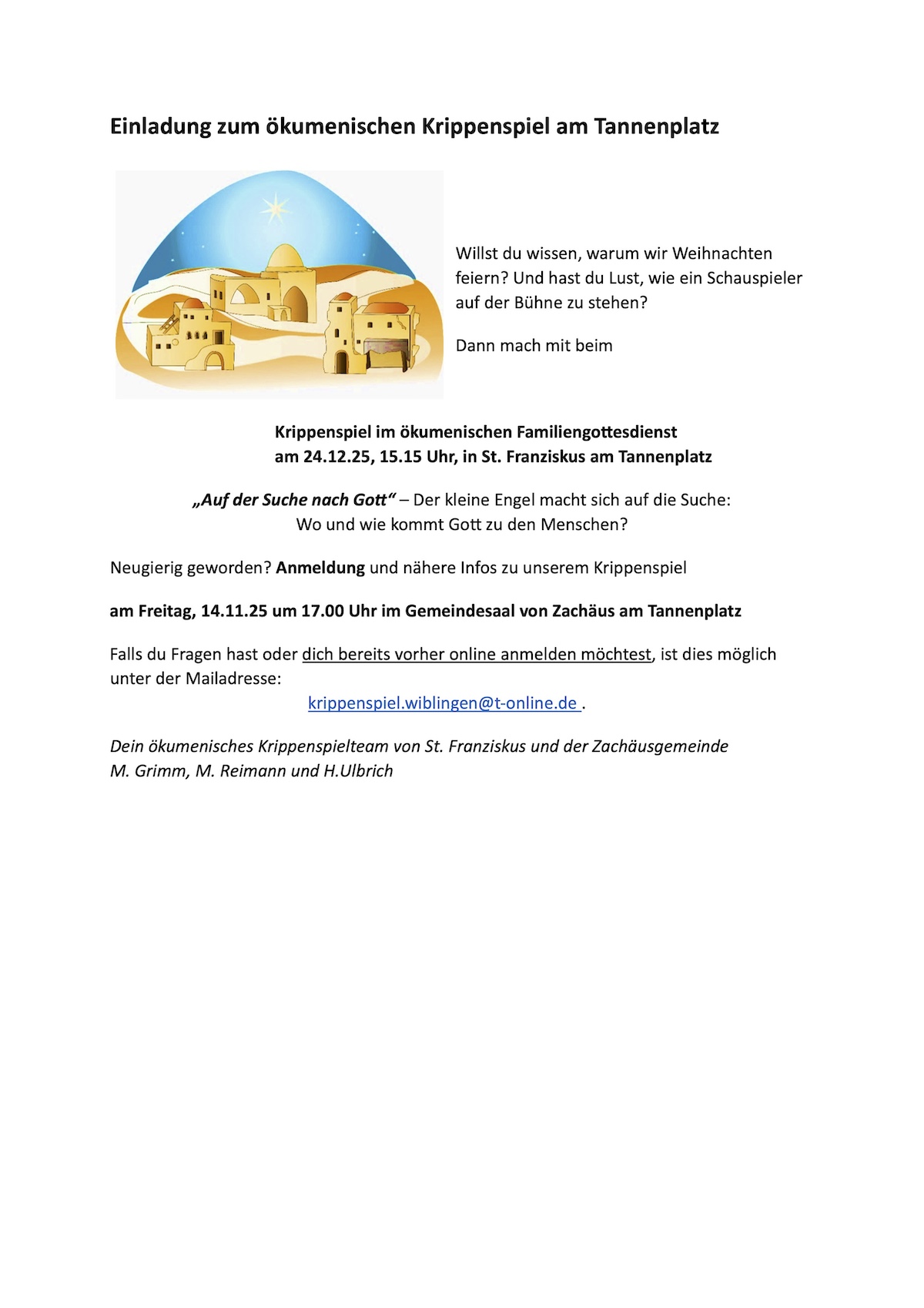 13. November 2025, 18 Uhr, Martinsspiel am Tannenplatz