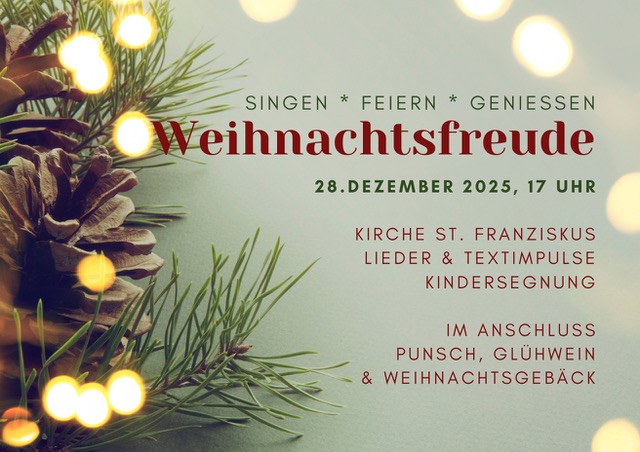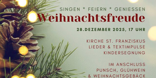 28.12.2025, 17 Uhr, Weihnachtsfreude: Singen, feiern, genießen und Kindersegnung in St. Franziskus18. Dezember 2025/in aktuelles, Aktuelles St. Franziskus (Wiblingen) https://www.ulm-basilika.de/wp-content/uploads/2025/12/weihnachtsfreude-2025.jpeg 452 640 Eleonore Fröhlich http://www.ulm-basilika.de/wp-content/uploads/2013/04/ulm-basilika-wibilingen-logo2.png Eleonore Fröhlich2025-12-18 13:54:322025-12-22 10:42:4928.12.2025, 17 Uhr, Weihnachtsfreude: Singen, feiern, genießen und Kindersegnung in St. Franziskus