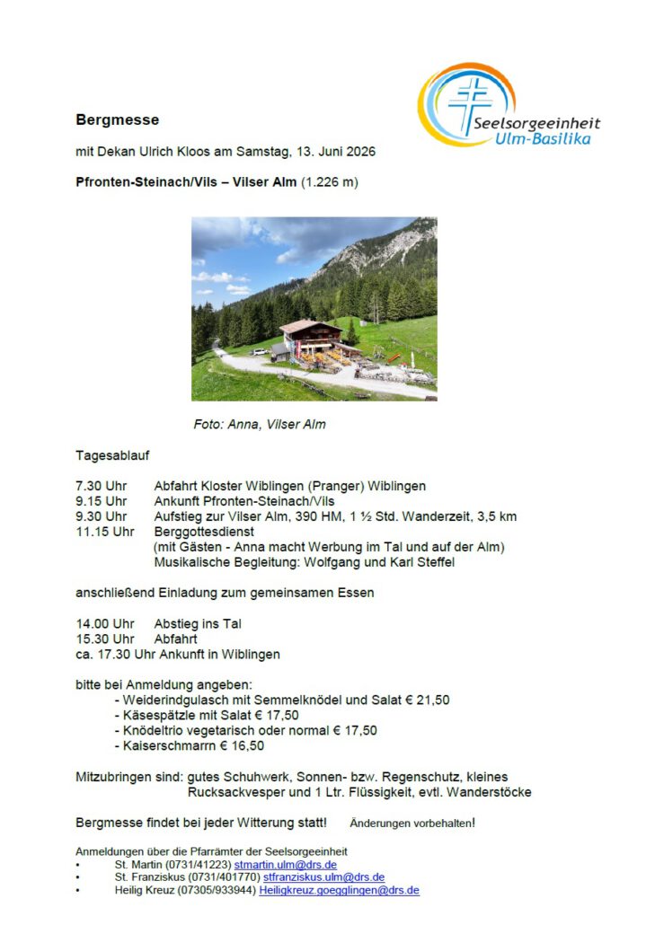Anmeldestart Bergmesse auf der Vilser Alm am Samstag, 13. Juni 2026