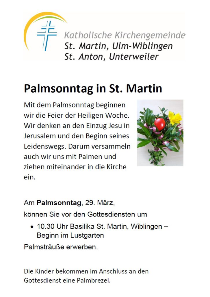 Gottesdienst am Palmsonntag in St. Martin am 29.03.2026 um 10:30 Uhr – Beginn bei schönem Wetter im Lustgarten