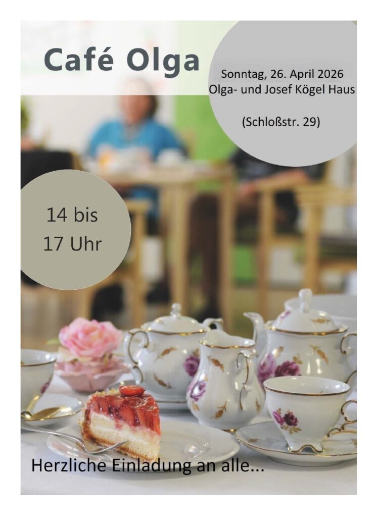 Herzliche Einladung ins Café Olga am Sonntag, 26.04.2026 von 14 – 17 Uhr im Olga- und Josef Kögelhaus, Schloßstr. 29, Ulm-Wiblingen