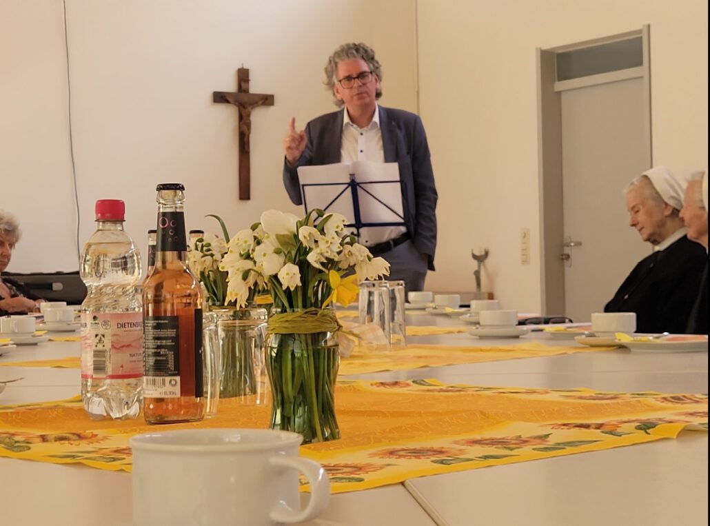 Wolfgang Steffel sprach über das Thema „I-Tüpfelchen“ und regte mit seinem Vortrag zum Nachdenken an. Frische Blumen sorgten für eine passende, frühlingshafte Atmosphäre.